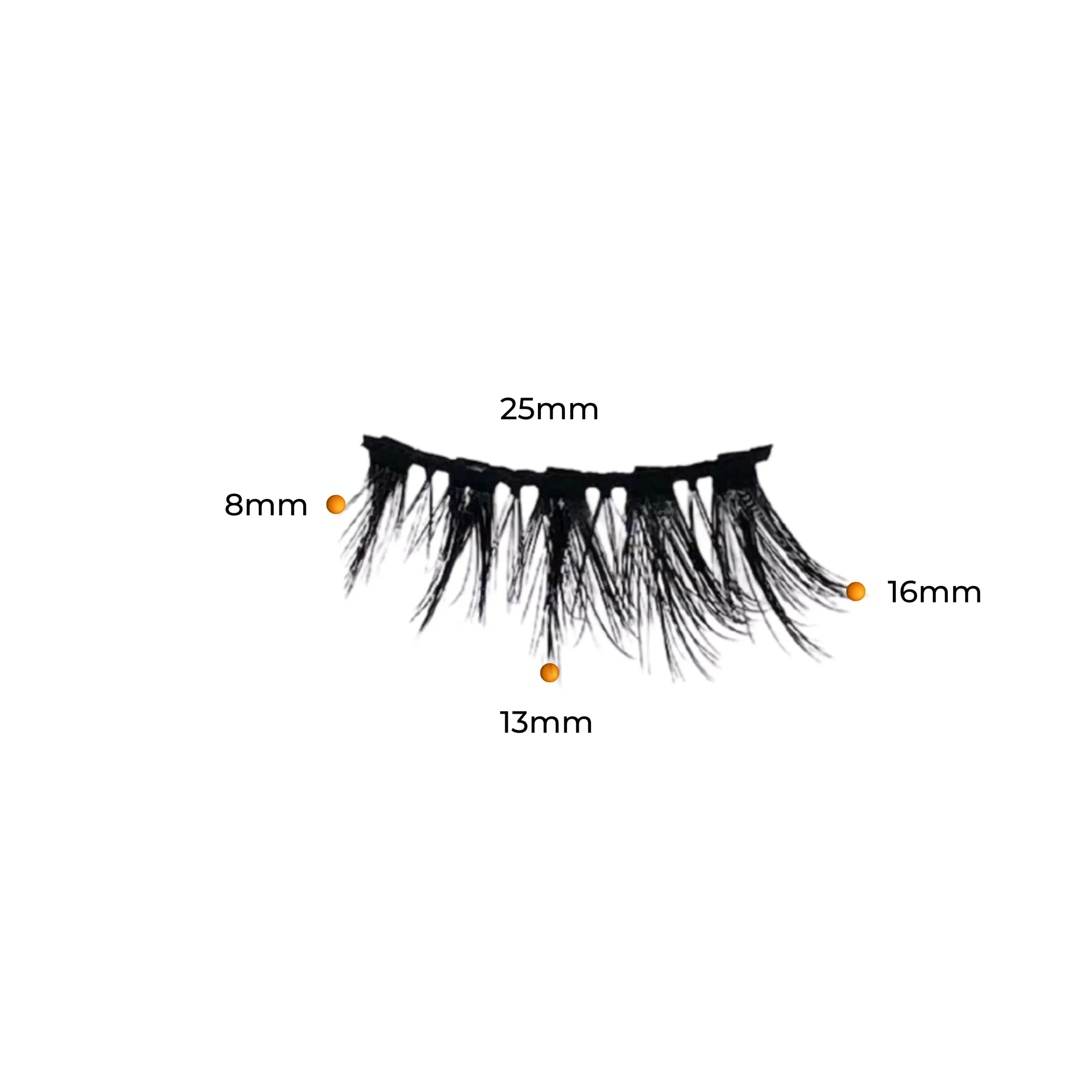 Embrace royalty with our “Lady Diana” lashes. Just like its namesake, this half lash style exudes grace, sophistication, and a timeless beauty. Ideal for those who aim for a refined look, these lashes blend beautifully with your natural ones, giving a soft and elegant uplift. With five secure mini magnets, they ensure a seamless application and lasting comfort. Let every blink be a statement with Lady Diana.